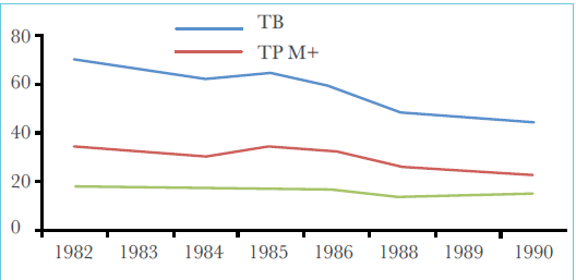 - Après l’année 1982, au recueil du système d’information installé à partir de cette année avec l’analyse de la prévalence et l’incidence de morbidité tuberculeuse couvrant tout le pays.