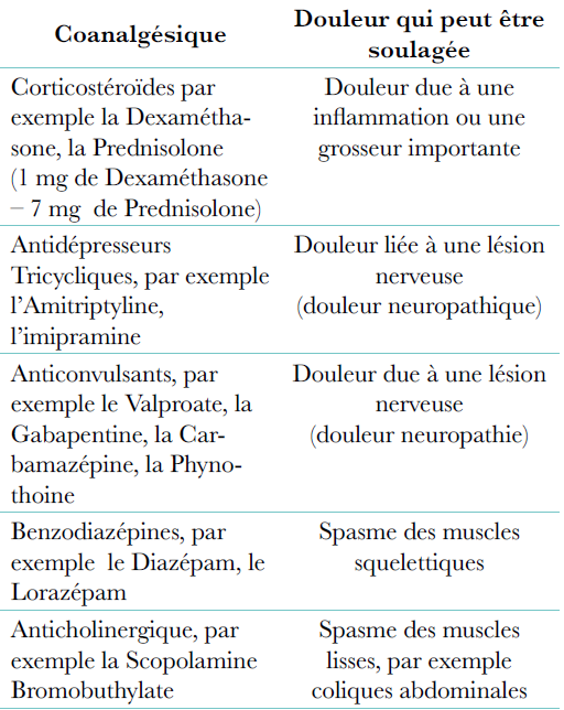 Douleurs qui peuvent être soulagées par des co-analgésiques :