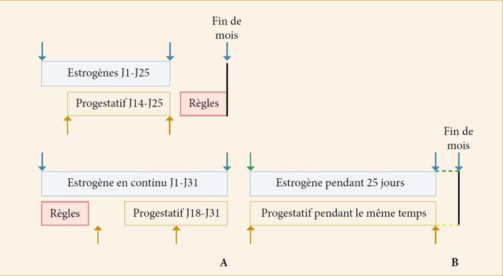 Tibolone (voie orale – Livial®) (16). Hormone synthétique qui a une activité analogue aux trois hormones sexuelles dans les différents tissus. Effets oestrogéniques favorables sur le vagin et la vessie, un effet progestatif anti prolifératif sur l’endomètre. La tibolone a une activité analogue à la testostérone qui peut jouer un rôle sur la libido. Mais ses effets secondaires cardiaques restreignent son emploi. Elle est contre indiquée en cas d’antécédent de cancer du sein.