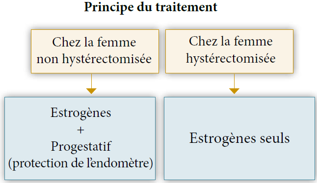 Œstrogènes locaux : ce sont les plus efficaces, le passage systémique est très faible, inférieur à 20pg/l, ils ne présentent aucune contre-indication. Une œstrogénothérapie locale est préférable pour traiter l’atrophie vaginale quand un traitement systémique n’est pas nécessaire pour d’autres raisons (9). Les œstrogènes locaux n’augmentent ni le risque de cancer du sein ni celui du risque cardiovasculaire (19). La protection de l’endomètre par un progestatif n’est pas indiquée. Plusieurs formes galéniques sont disponibles ovules, crèmes (promestriene, colpotrophine ) ; anneau vaginal (estring) non disponible en Algérie. Il n’existe aucune différence d’efficacité des différents produits selon une étude de la Cochrane 2016. La prescription est quotidienne pendant 2 à 3 semaines puis bi hebdomadaire.