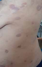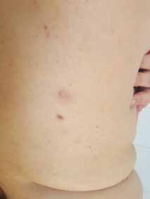 Les lésions cutanées sont généralement de multiples papules et/ou nodules de quelques millimètres à quelques centimètres de diamètre (photo 7), groupées ou éparses sur les membres ou le tronc. Elles ne sont ni douloureuses ni prurigineuses. Il n’y a pas d’adénopathie. En général, la NFS est normale, et il n’y a pas d’élévation des LDH [26].