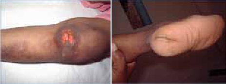 Photo 8 : Lymphome B cutané à grandes cellules de type jambe (Dr TAIBI, service de dermatologue du CHU Mustapha Bacha, Alger)Photo 9 : Lymphome B cutané à grandes cellules de type jambe siégeant sur l’épaule (Dr TAIBI, service de dermatologue du CHU Mustapha Bacha, Alger);