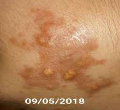 Photo 7 : Lymphome B cutané de la Zone marginale type MALT (Dr TAIBI, service de dermatologue du CHU Mustapha Bacha, Alger)