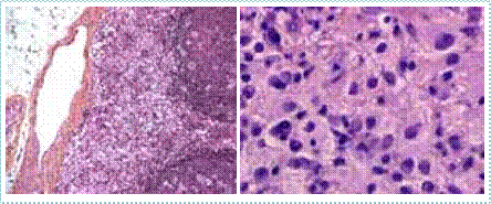 Une prolifération dermique ou dermo-hypodermique dense d’architecture diffuse de grands lymphocytes atypiques à noyaux arrondis : les immunoblastes [29].