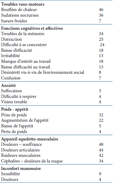 Signes et symptômes urogénitaux liés aux déficits en estrogènes (extrait de Sturdee et al.)