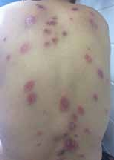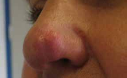La forme sous-cutanée (figure 2) (touchant le derme profond) se présente sous la forme d’une tuméfaction de consistance ferme, élastique, chaude mais non battante soulevant une peau saine légèrement bleutée ou rosée.