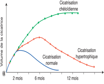 Cicatrice hypertrophique : essentiellement médical, s’améliore spontanément par pressothérapie.