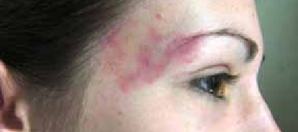 cicatrisation secondaire ou dirigée : si fermeture impossible, mauvaises conditions locales (sepsis, souillée) plaie contuse et dilacérée, brûlures cutanées. Elle se déroule en 3 phases qui se succèdent obligatoirement. Elle est souvent longue et aboutit à des cicatrices dont l’aspect cosmétique est rarement optimal (cicatrice pathologique) (figures 2, 3).