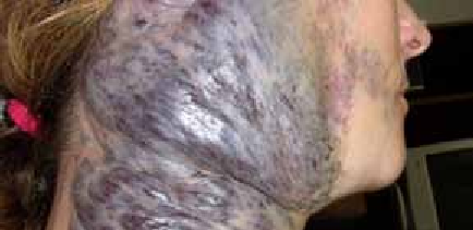 Figure 1 : Hémangiome, forme tubéreuse. (Martin A, Barbier C, Do- mengie F, Nouri M, Cottier JP, Herbreteau D. Les anomalies vasculaires Superficielles. Intérêt de la classification dans la prise en charge radiologique et thérapeutique).