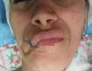Figure 13 : Cicatrice rétractile para commissurale gauche