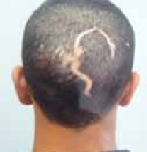 Figure 8 : Cicatrice glabre « alopécie » du cuir chevelu post chirurgicaleFigure 9 : Cicatrice déhiscenteFigure 10 : Cicatrice rétractile du coude post brûlures thermiques