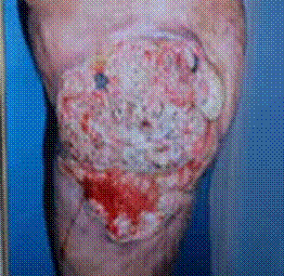 Figure 11 : Epithélioma spinocellulaire sur séquelle de brûlures du genou gauche – Cicatrice dégénérée