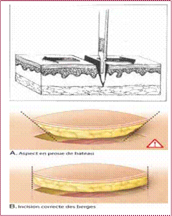 Précautions techniques, avant tout faire une incision correcte des berges avec une lame de bistouri