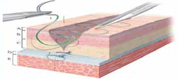 Sauf au niveau de cuir chevelu, il faut inciser parallèlement à l’implantation pilaire (figure 15).