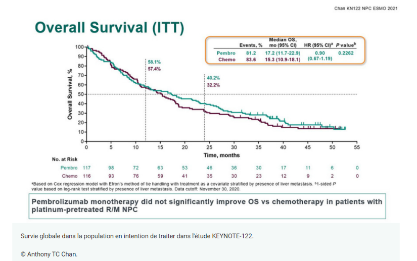 Dans une autre analyse rétrospective à partir des données SEER, la survie à long terme était significativement meilleure chez les patients HPV positif (médiane 131 mois vs 20 mois. P < 001) avec une réduction de 69 % du risque de mortalité par rapport aux patients HPV négatif.