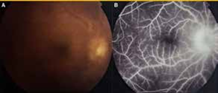 Les caractéristiques cliniques typiques comprennent une panuvéite aiguë, récurrente, non granulomateuse, une hyalite diffuse, une vascularite rétinienne occlusive et œdé- mateuse, une évolution avec des poussées imprévisibles pouvant entrainer une cécité.
