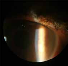 Figure 1 : Précipités rétro cornéens chez un malade atteint de la maladie de Behçet.