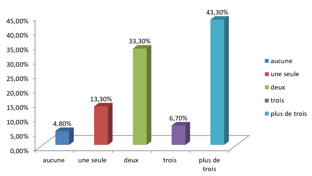 En effet 63.3 %, du personnel de la santé interrogé ont déclaré avoir déjà contracté une ou des infections respiratoires hautes (avant la COVID-19) dont 47.4 % ne portaient pas de masque.