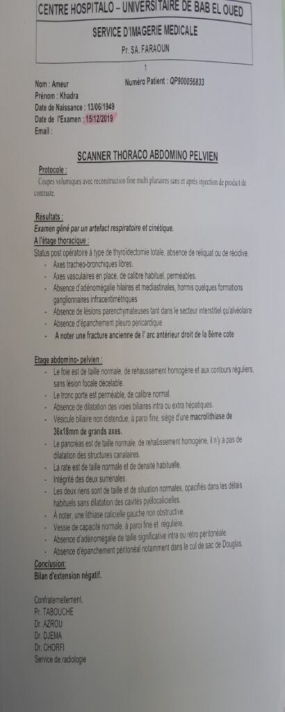 K. ALLOUACHE, N. BENKHERFALLAH, CHABANE, Service ODF, CHU Beni Messous.